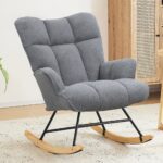 SAETSFEG Nursery Rocking Chair Teddy, High Backrest, Comfortable Stylish with Padded Seat for Living Rooms, Bedrooms, Offices, DarkGrey
