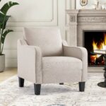 SAETSFEG Mid-Century Accent Chairs, Linen Modern Upholstered Living Room Chair, Comfy Reading Armchair with Scooped Arm and Wide Seat, Compact Single Sofa Chair for Bedroom Office, Beige 1PC